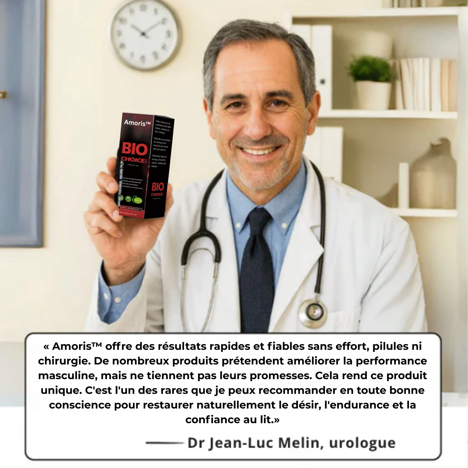 Une baisse de libido et une endurance en déclin s'installent souvent progressivement, mais Amoris™ apporte une aide rapide et naturelle 🌿 lorsque cela compte vraiment. Sa formule puissante à base d'Épimède, administrée en quelques gouttes 💧, augmente le flux sanguin 🩸, la sensibilité et l'énergie ⚡, pour que vous vous sentiez confiant 😎 et maître de vous-même 👑 là où cela compte le plus : au lit.