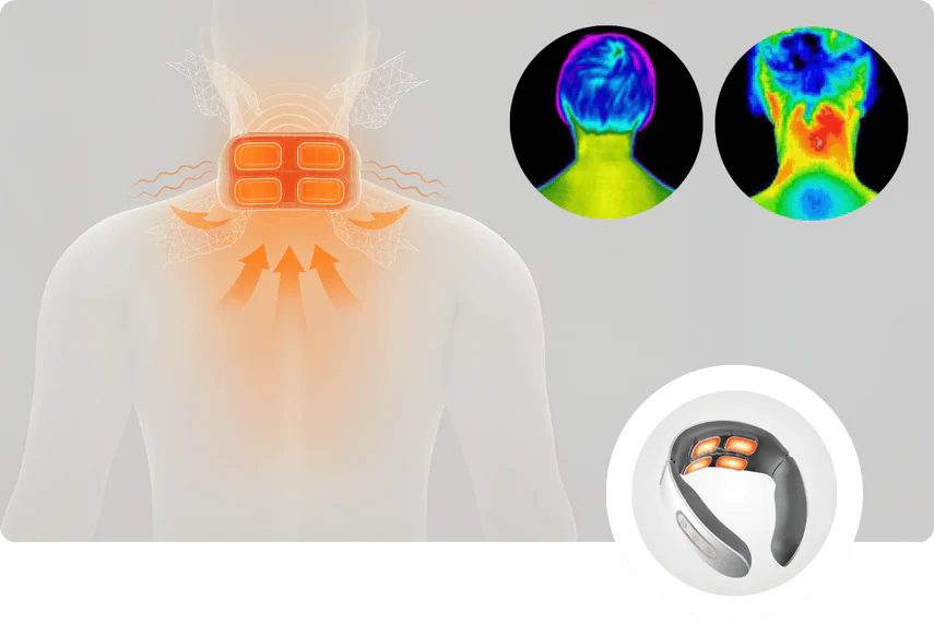 La chaleur 42°C à action profonde 🔥 de CerviRelax™ soutient la circulation sanguine et procure ainsi rapidement une détente notable. 🧘♀️
