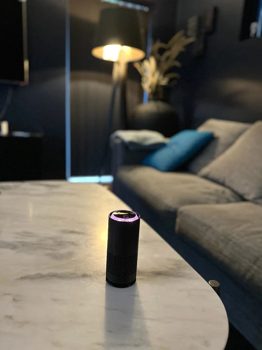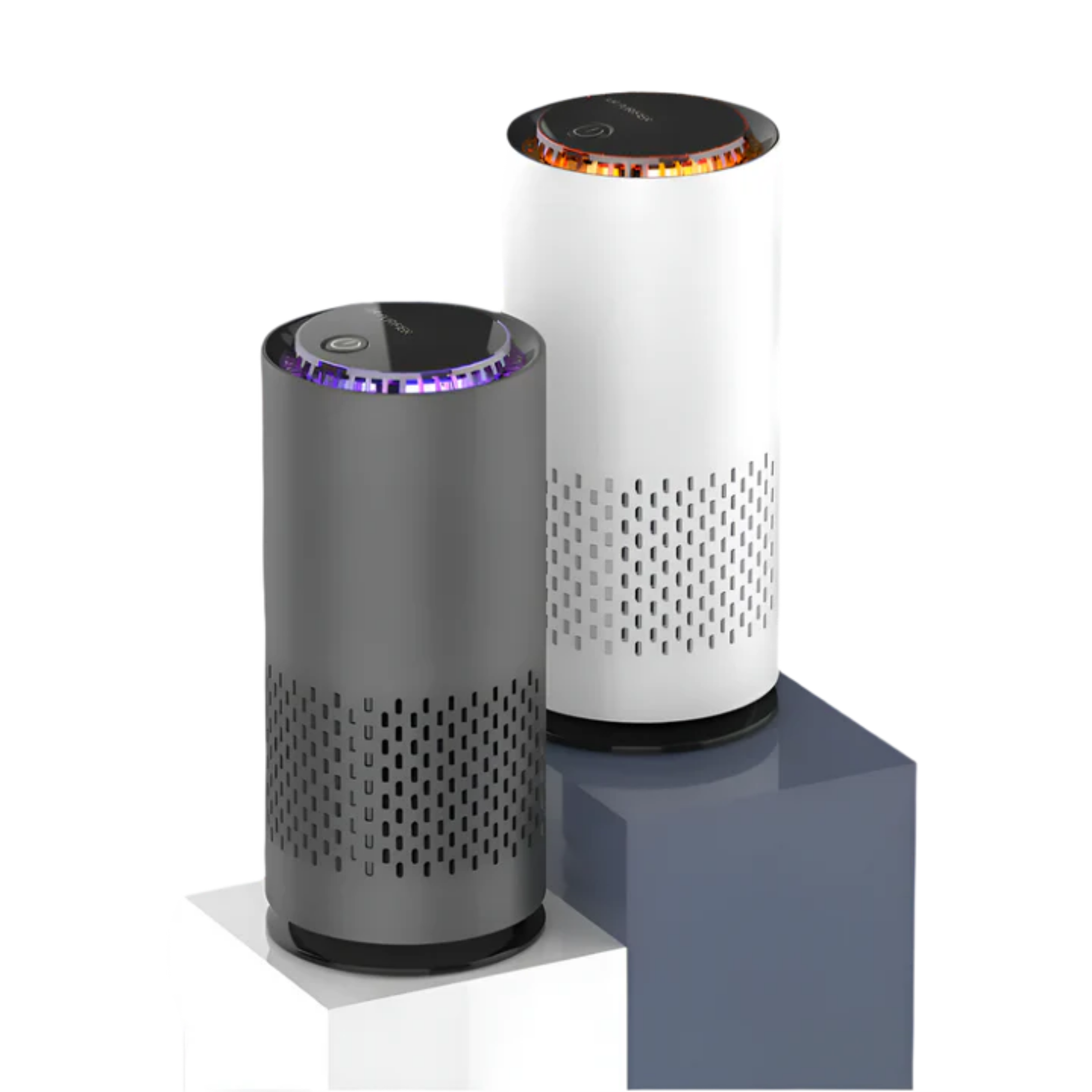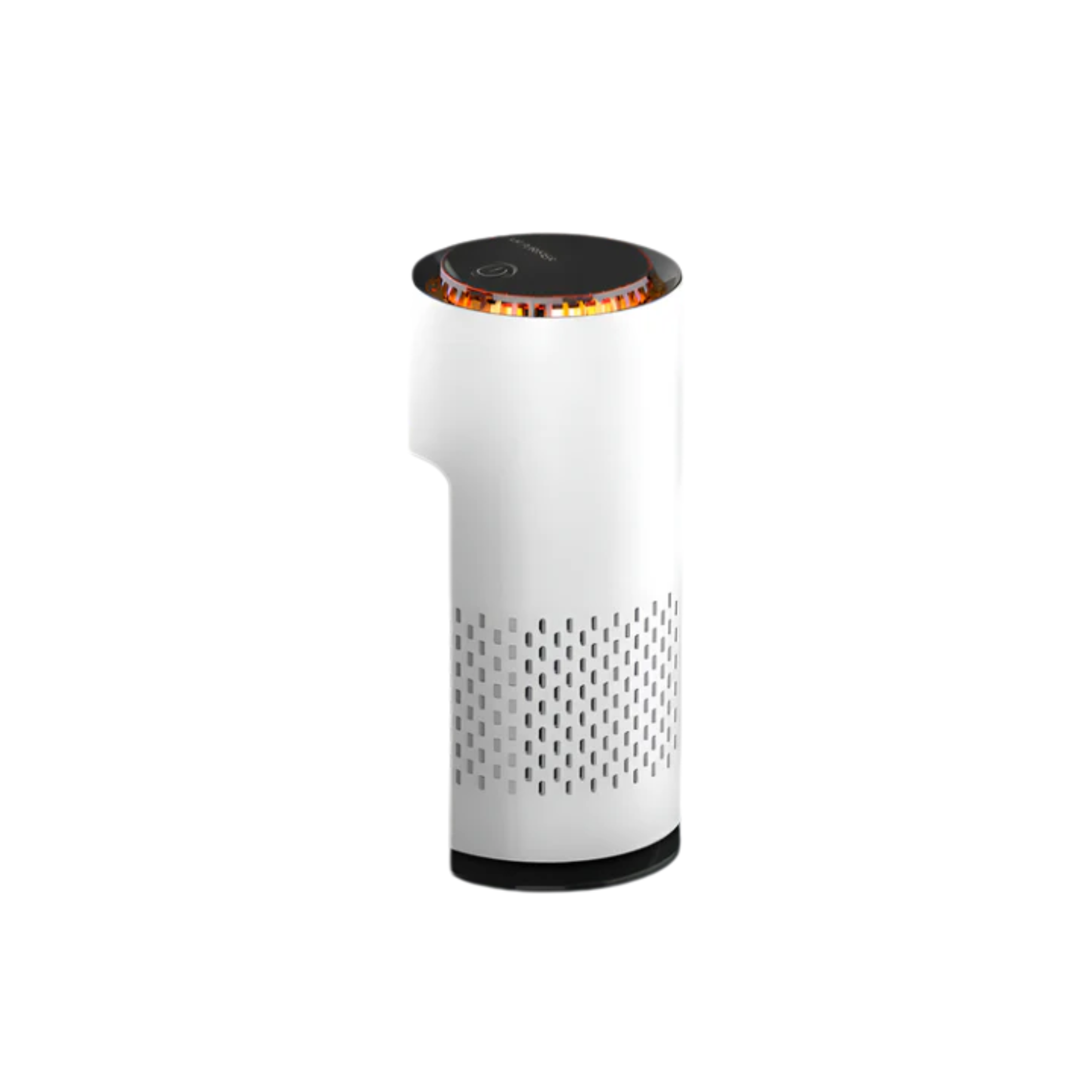 Le purificateur d'air ClairAir™ est une solution compacte et polyvalente, parfaite pour la maison, le bureau, et même dans la voiture. Il fonctionne silencieusement pour que vous puissiez profiter d'un air frais et propre sans perturbations. Le purificateur dispose également de deux réglages de puissance : un avec une force élevée et un faible niveau sonore, et une force moyenne qui est silencieuse. De plus, vous pouvez appuyer pendant 1,5 seconde pour sélectionner une couleur fixe et appuyer à nouveau pendant 1,5 seconde pour éteindre complètement la couleur.