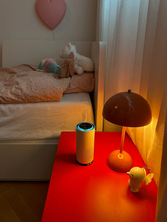 Notre purificateur d'air est sans fil, ce qui le rend facile à déplacer de pièce en pièce, vous permettant d'assurer une bonne qualité de l'air là où vous passez le plus de temps. Vous pouvez le placer à l'extérieur sans vous soucier des prises ou des câbles, ce qui le rend également plus adapté aux enfants. De plus, son design compact et ses couleurs s'intègrent parfaitement dans la décoration moderne. Le purificateur d'air est idéal pour les pièces de petite et moyenne taille.