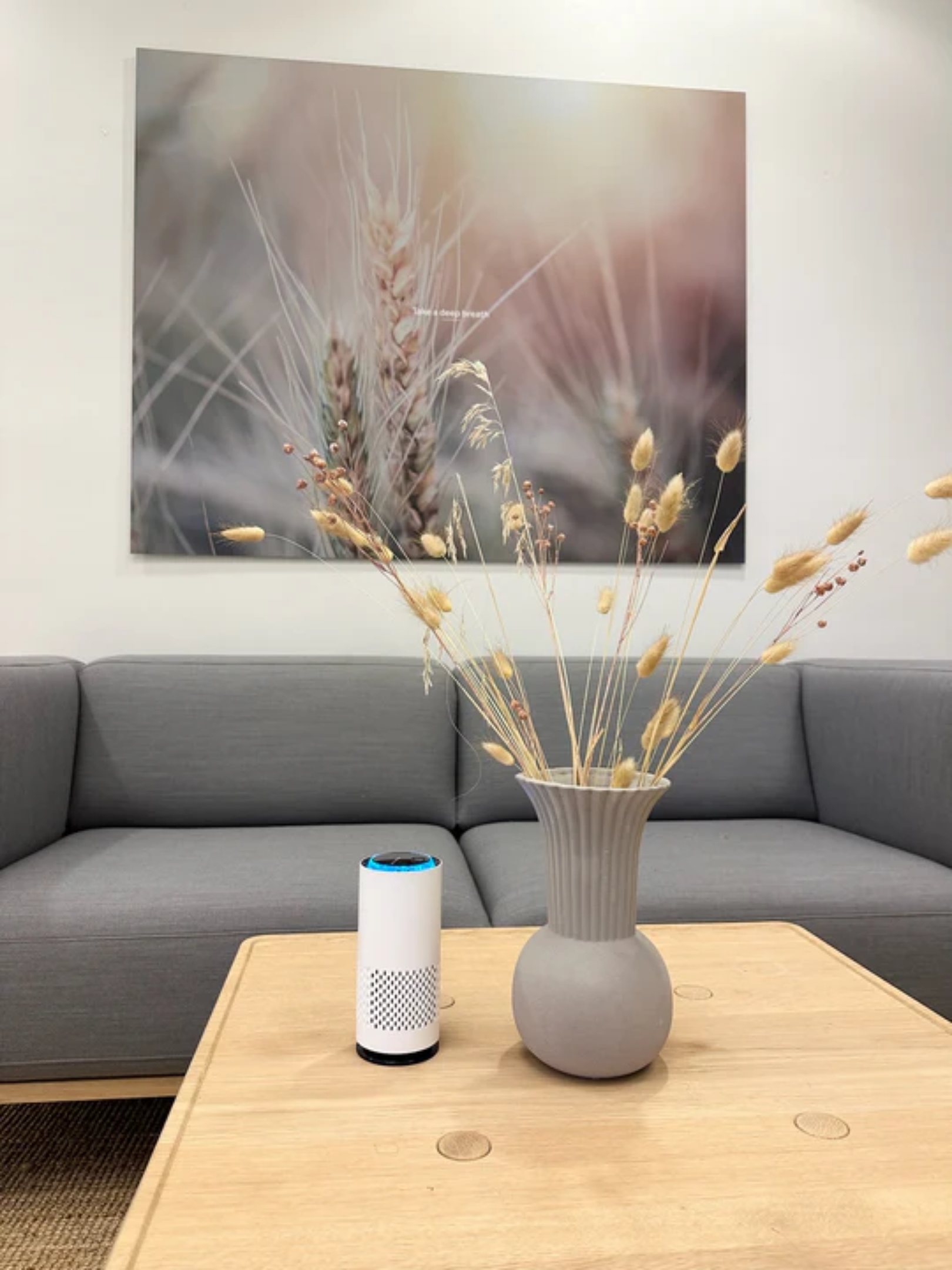 Un purificateur d'air ClairAir™ élimine jusqu'à 99,98 % des particules nocives telles que la poussière, le pollen et les bactéries, vous permettant de respirer librement dans un environnement plus propre et plus sain. - Moins d'allergies et d'asthme