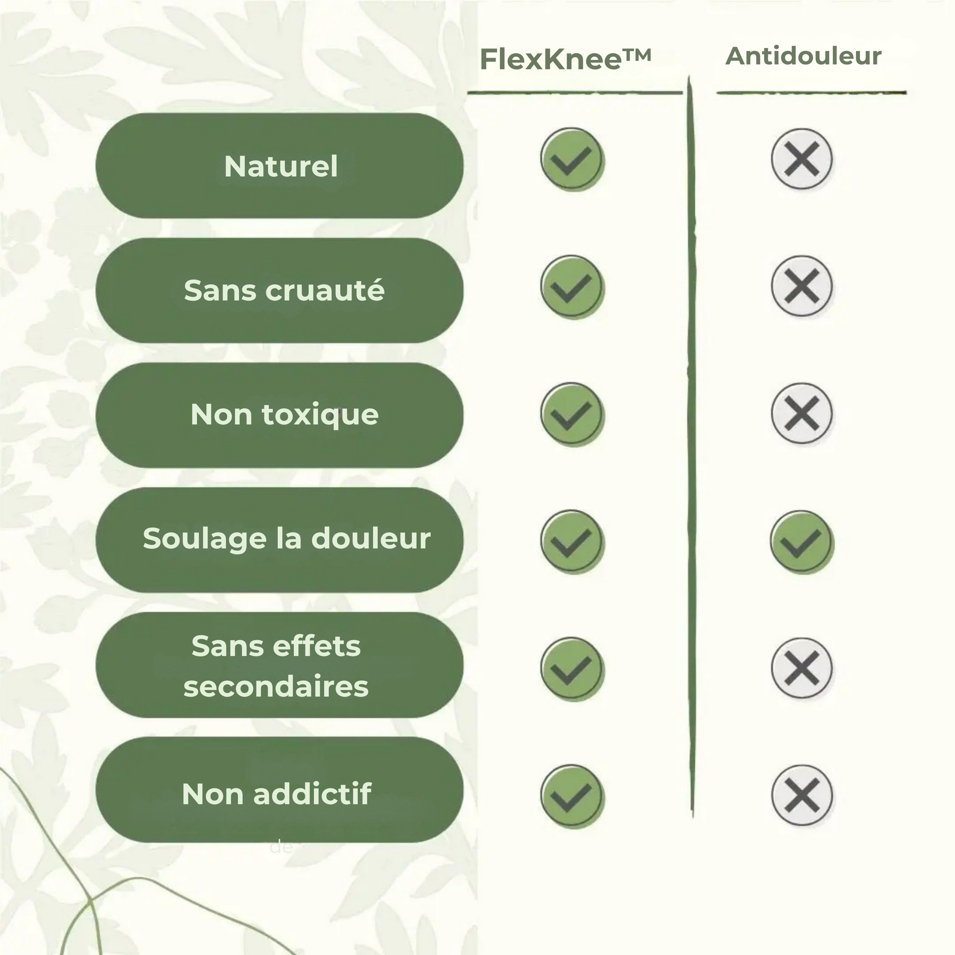 FlexKnee™ a été développé précisément pour cette raison : offrir un moyen sain et naturel de soulager immédiatement la douleur au genou tout en permettant au genou de réparer progressivement les dommages.