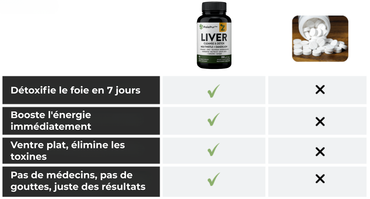 Fatigué des détox qui ne traitent que les symptômes ? 😩 La plupart des produits se concentrent uniquement sur des résultats superficiels et exigent des sacrifices douloureux. FoiePur™ a été développé avec des hépatologues pour aller au-delà.