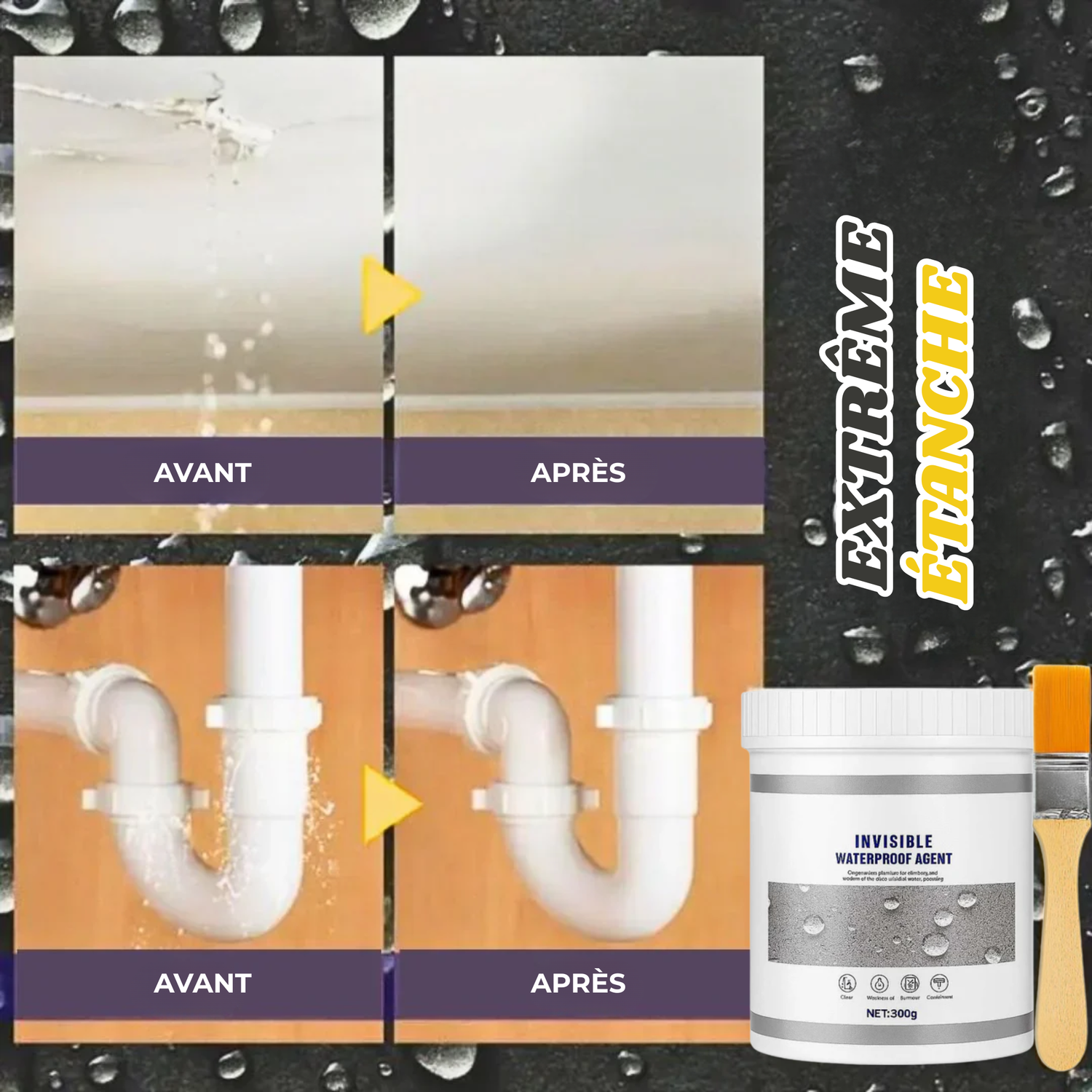 HydroFix™ fonctionne comme un vernis transparent à base d'eau 💧 qui peut aider à protéger les surfaces contre les fuites d'eau 🚫. Il s'applique avec le pinceau fourni 🖌️ et peut être utilisé sur différents types de matériaux tels que les carreaux, le bois, le béton, le métal ou le plastique 🧱🌲⚙️.