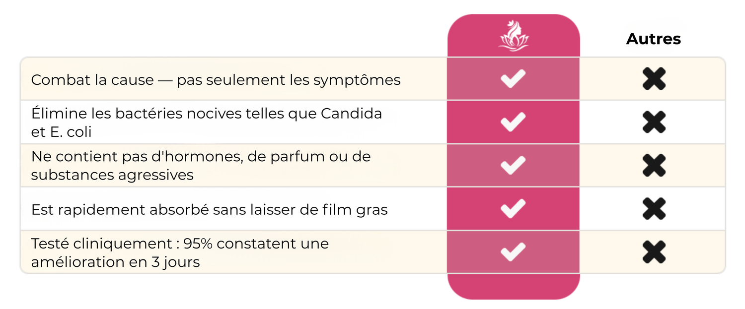 Je n'osais en parler à personne, pas même à mon partenaire. Les démangeaisons et les brûlures me rendaient tellement incertaine au lit. 😔 Mais cette crème m'a redonné confiance en quelques jours seulement. Pas de douleur, pas de honte. Je me sens à nouveau comme une femme. 👑