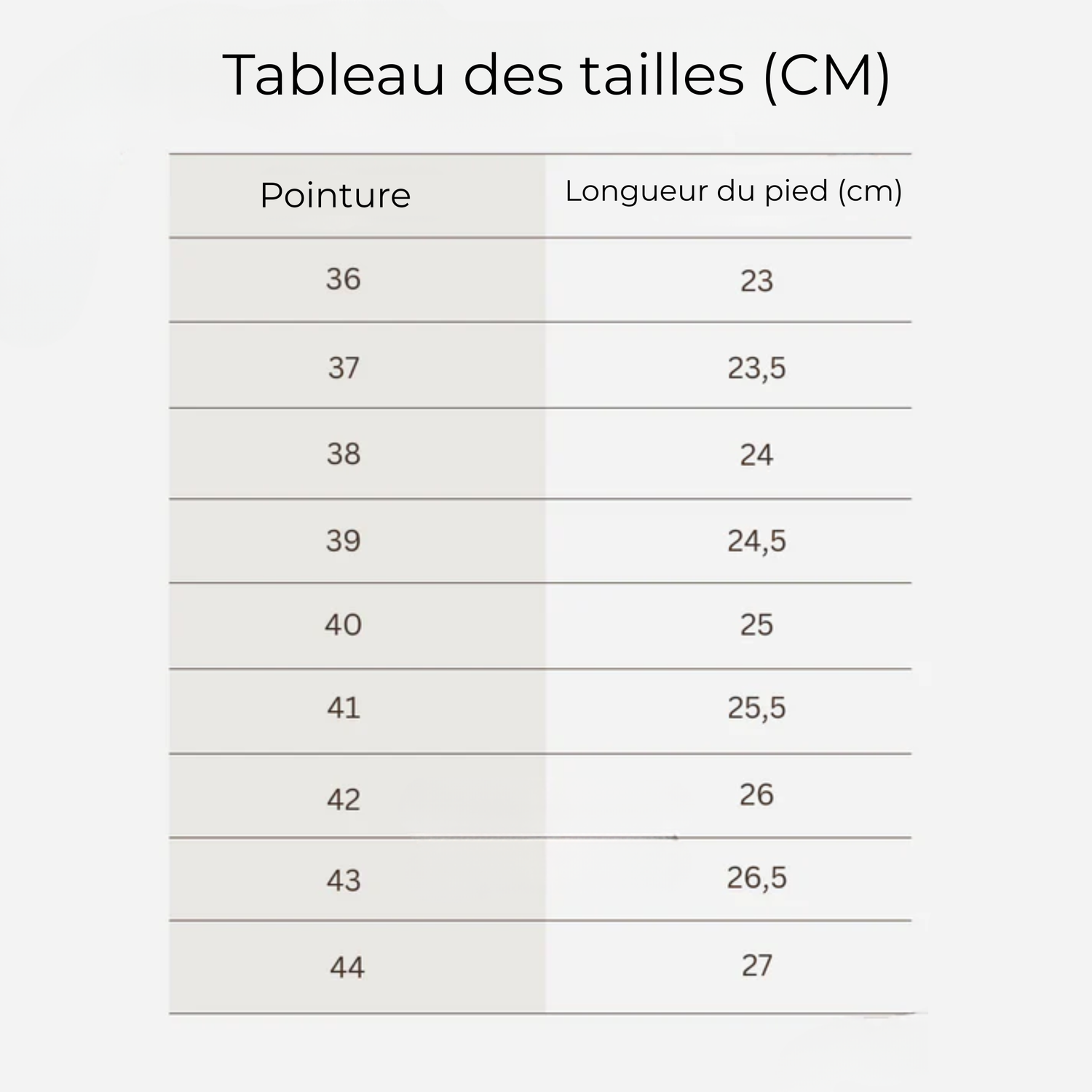 Nous recommandons généralement de choisir une taille au-dessus de votre taille habituelle, selon notre recommandation de taille, afin de garantir un ajustement parfait, surtout si vous portez des chaussettes plus épaisses.
