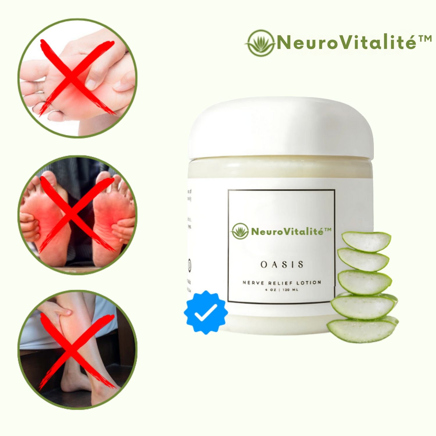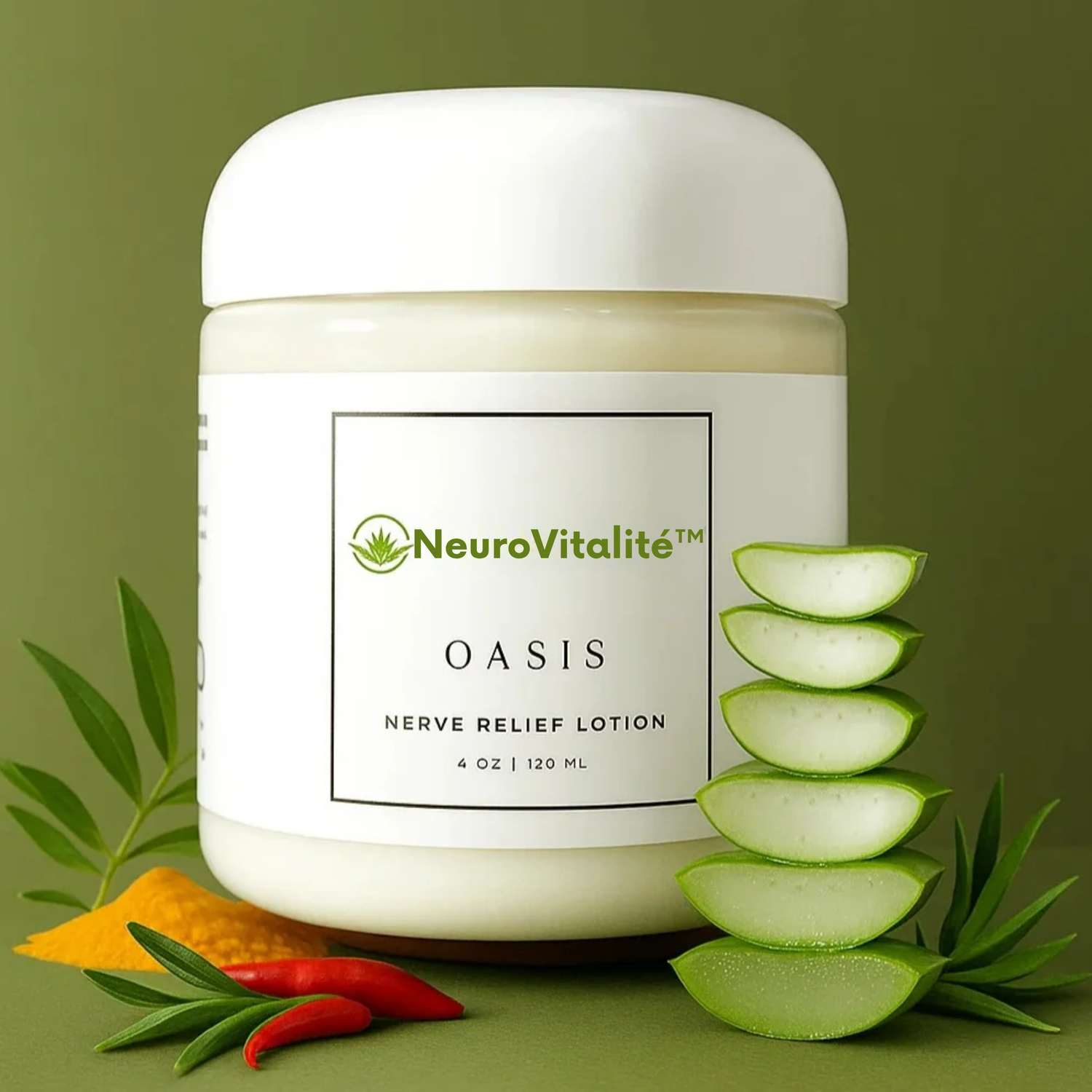 La formule NeuroVitalité™ est enrichie d'ingrédients naturels tels que l'aloe vera, la capsaïcine, le menthol, l'arnica et le curcuma, qui procurent ensemble un soulagement rapide et renforcent la santé nerveuse en profondeur. L'aloe vera est connu pour ses propriétés apaisantes et hydratantes, aidant à réduire l'inflammation et à restaurer l'équilibre des nerfs.