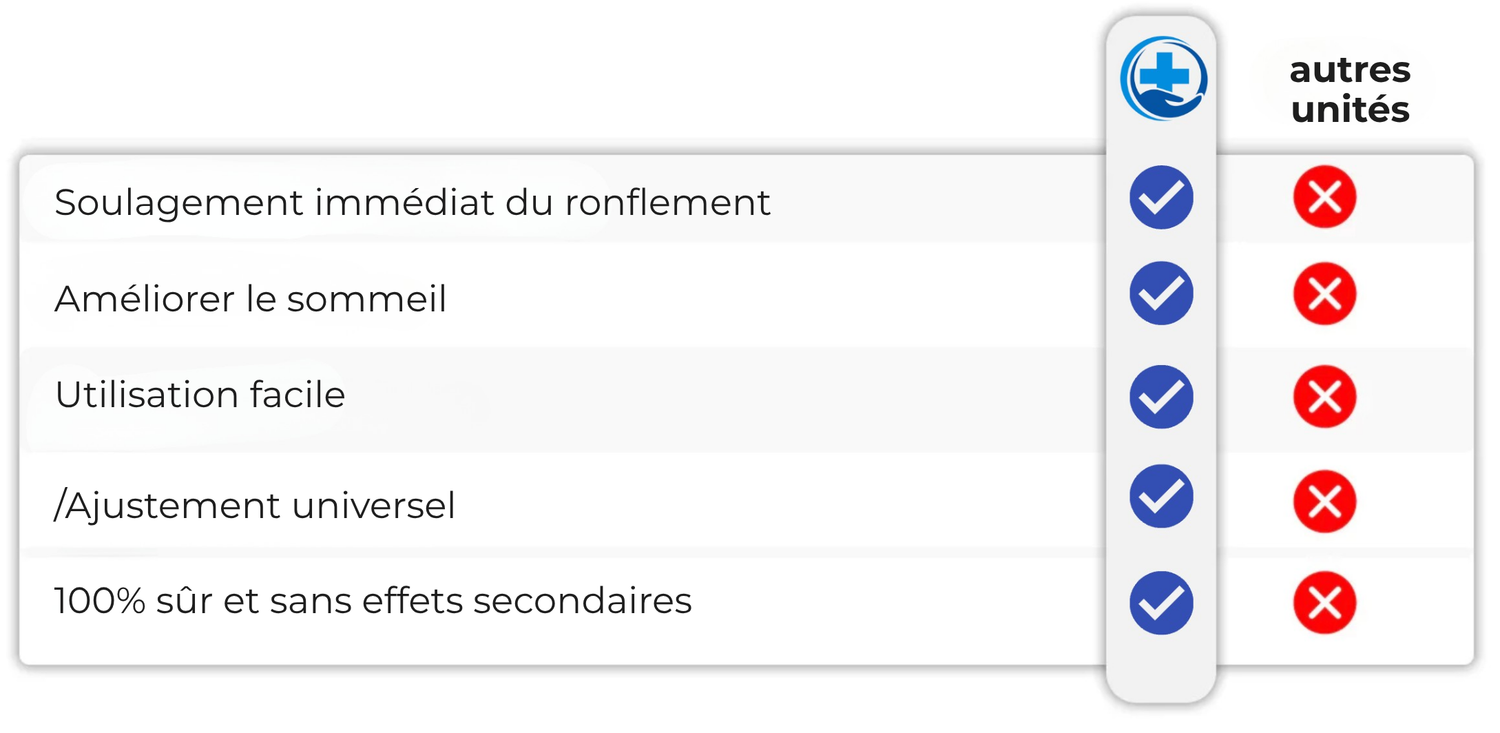 De nombreux utilisateurs ressentent un soulagement immédiat après la première nuit. Après seulement quelques jours, 94 % des utilisateurs signalent une nette diminution du ronflement.