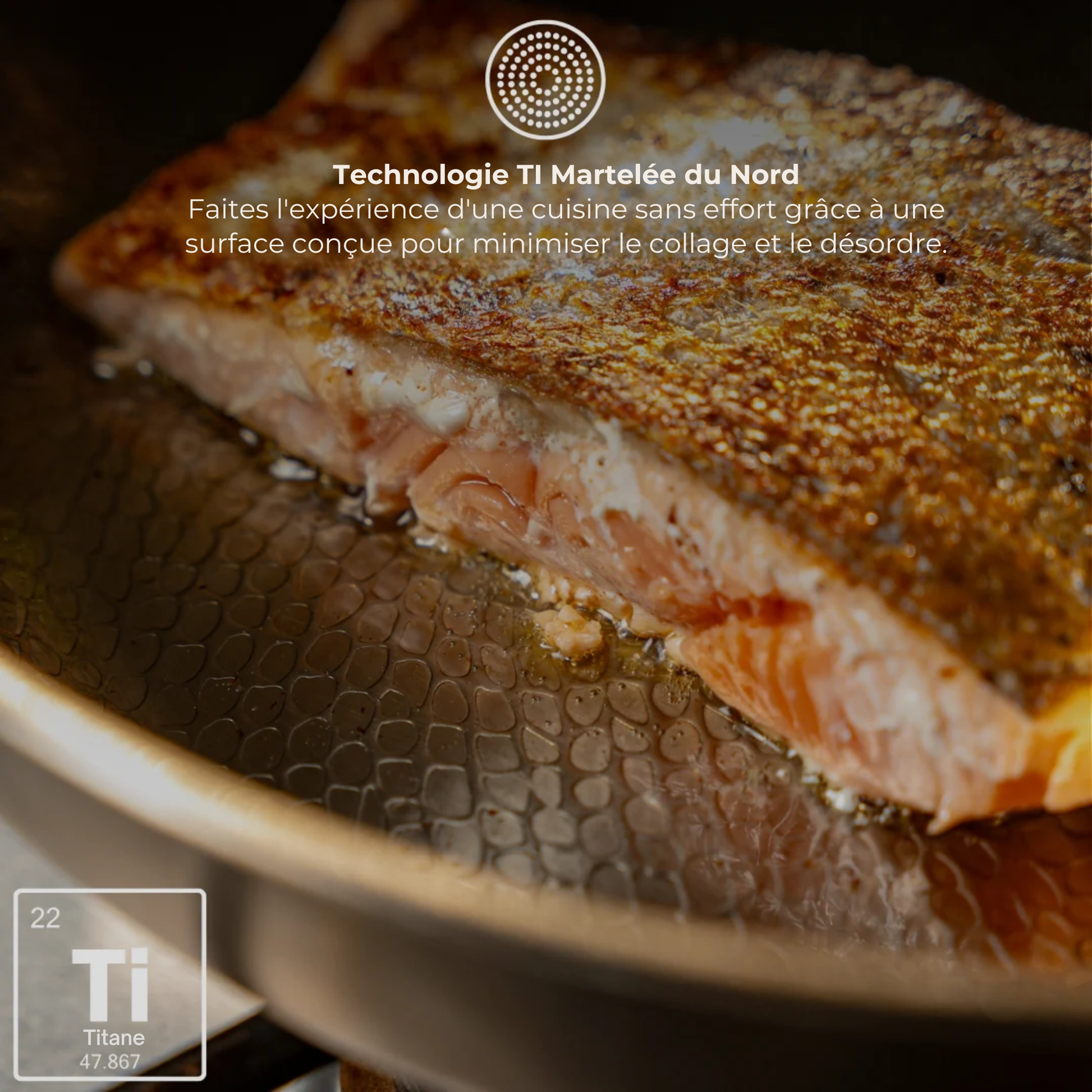 Découvrez pourquoi les cuisiniers amateurs sérieux adoptent le titane. La Poêle Martelé Pro TitaneForma™ combine des matériaux purs avec des performances ultimes – sans revêtements, sans toxines, sans compromis. 💯